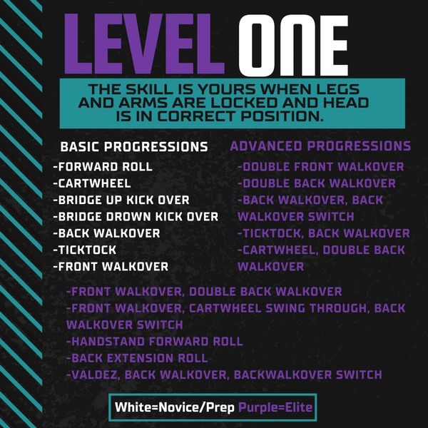 Here is an example of what some of the Level 1 progressions should look like when perfected!
